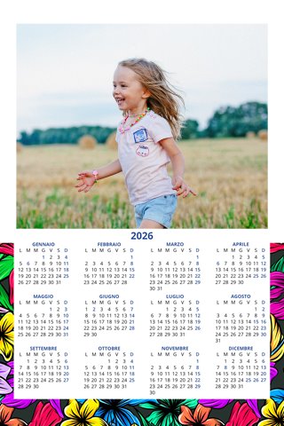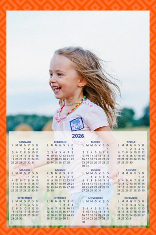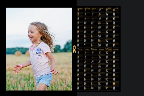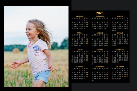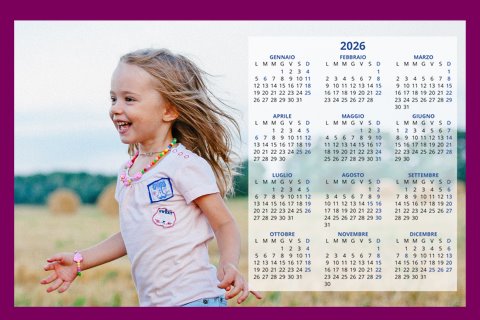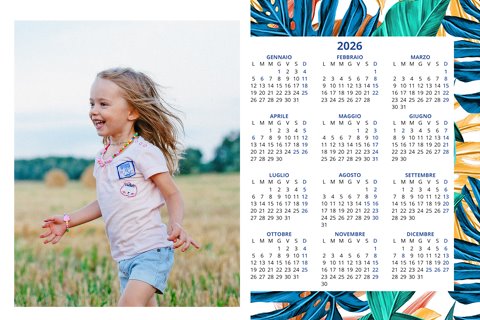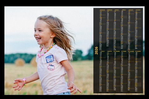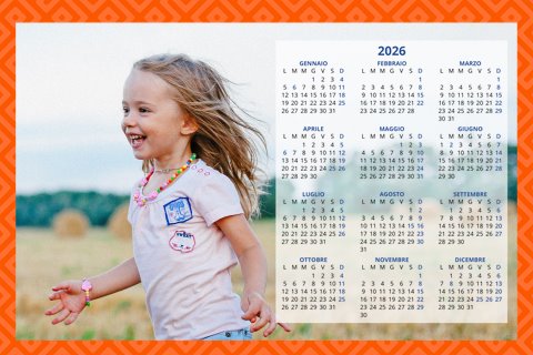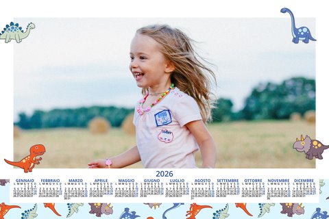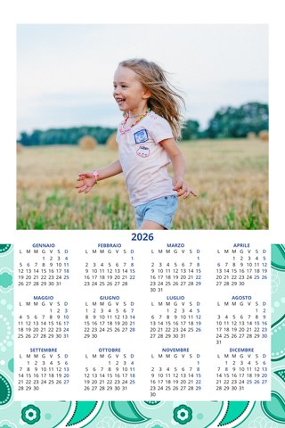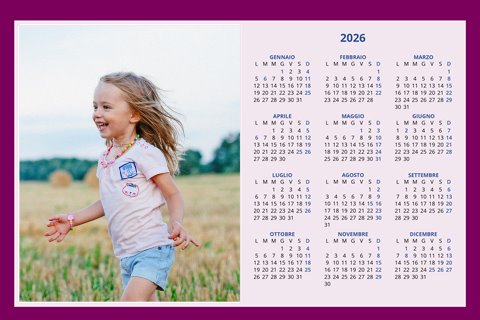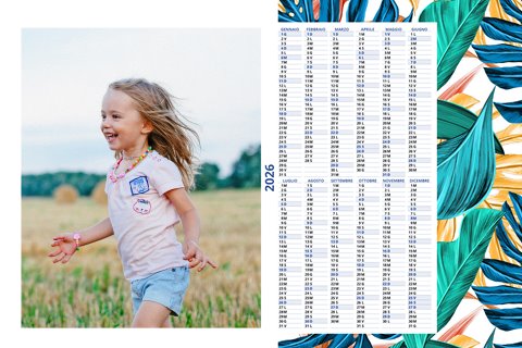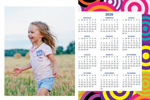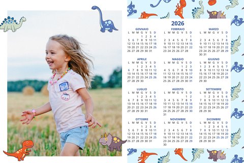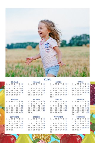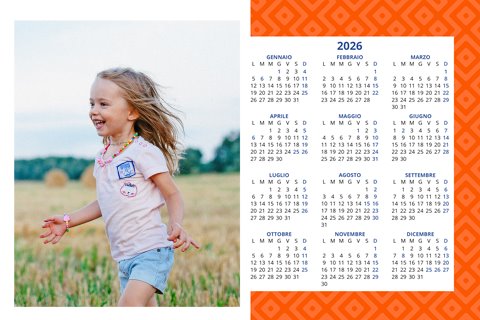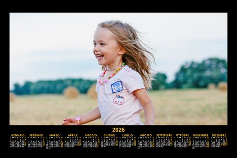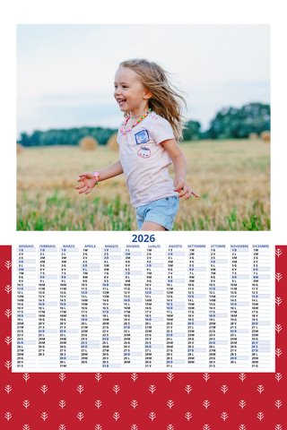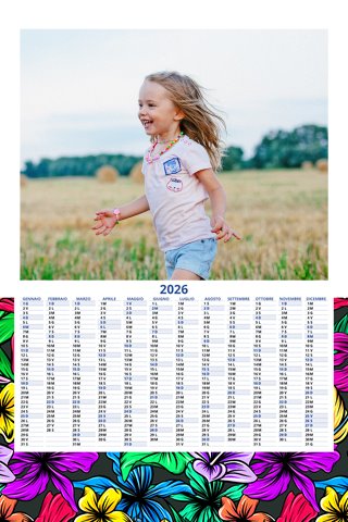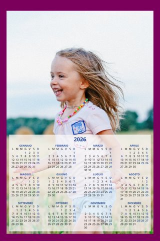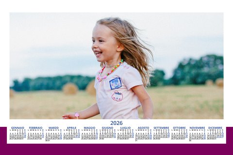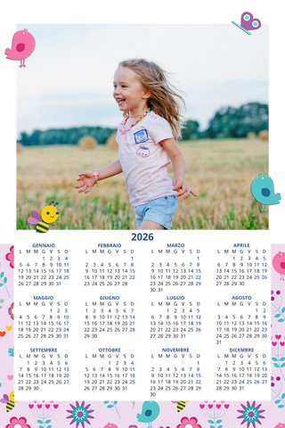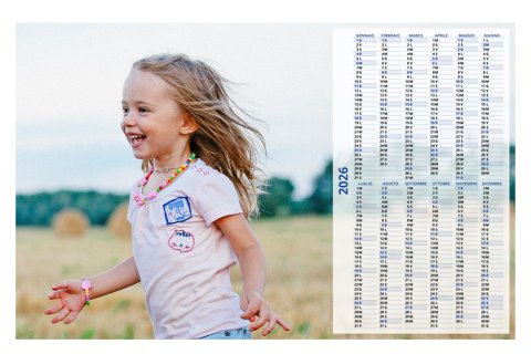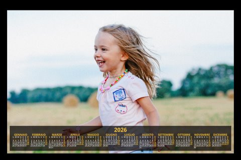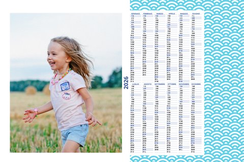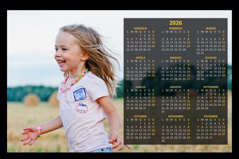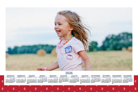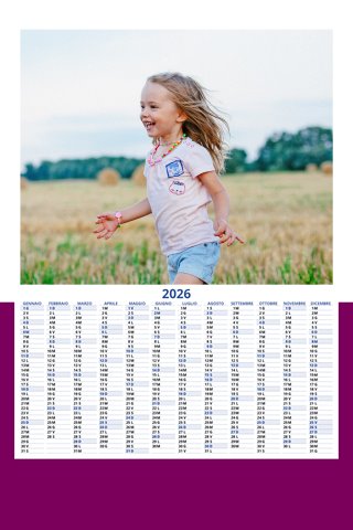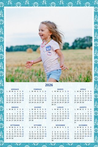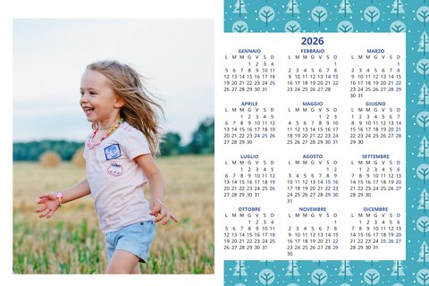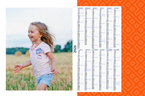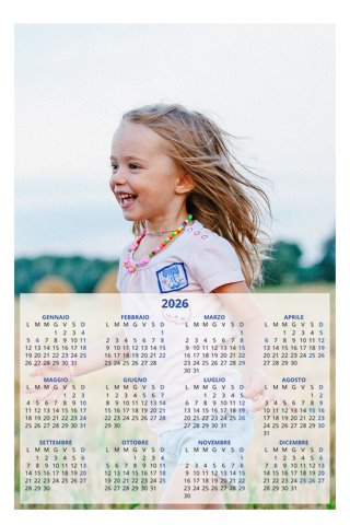 I Calendari Annuali sono offerti in differenti dimensioni e stampati su vari tipi di supporto. E’ necessaria una fotografia, da inserire in una delle raffinate grafiche offerte. Il posizionamento dell’immagine è determinante per la qualità del risultato finale: potrai modificare l’anteprima del tuo calendario, ed avere quindi il risultato più soddisfacente. E’ possibile effettuare questa operazione direttamente online.