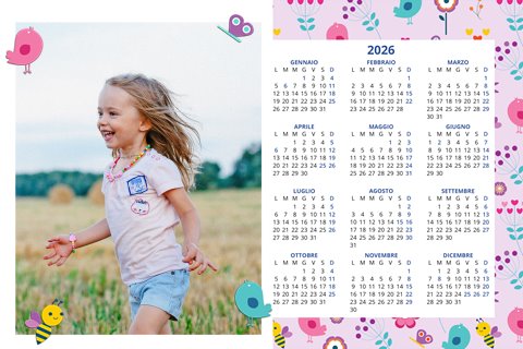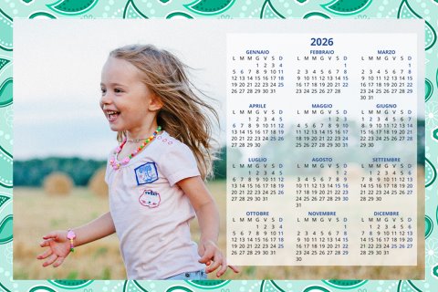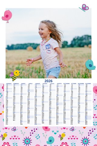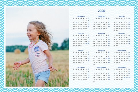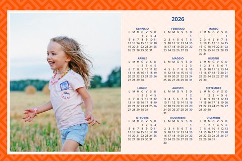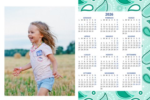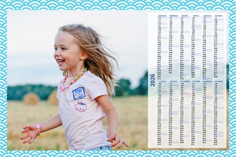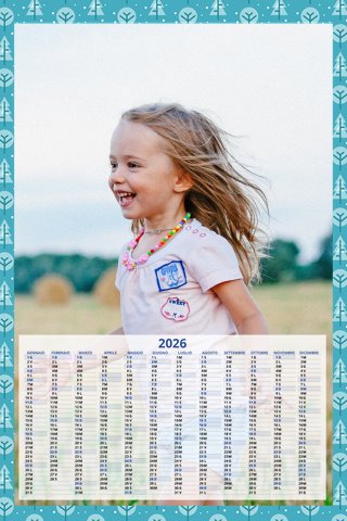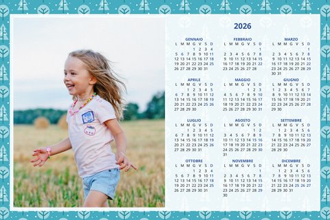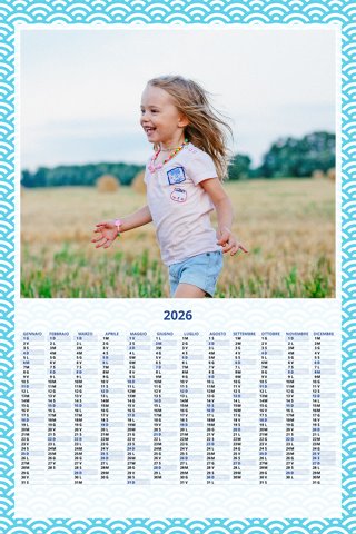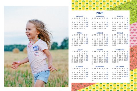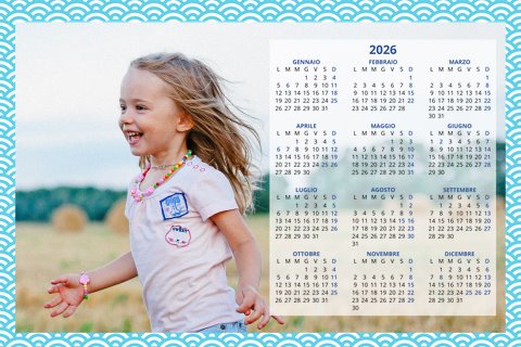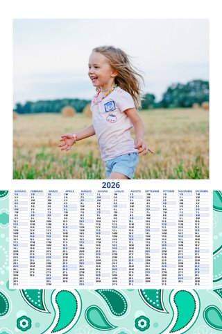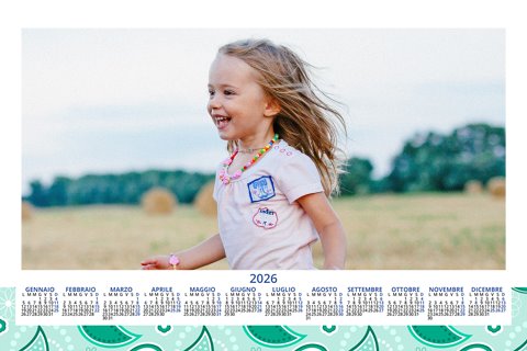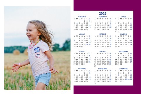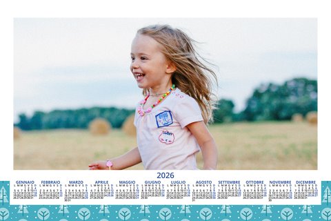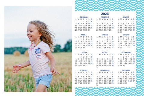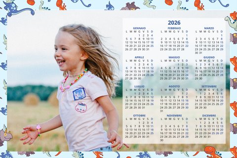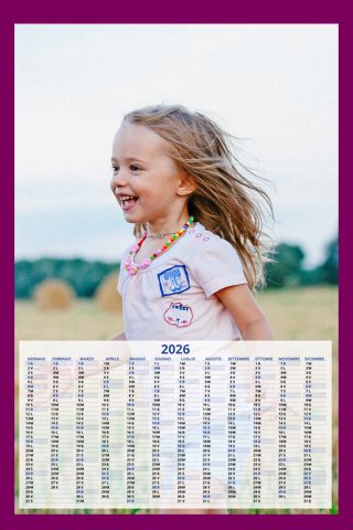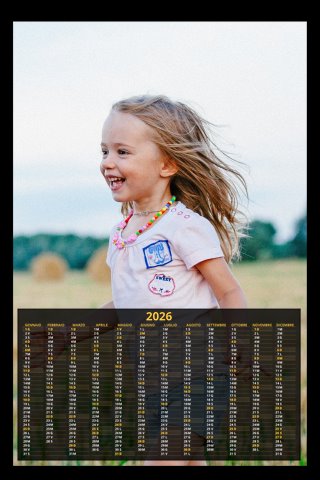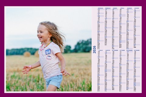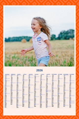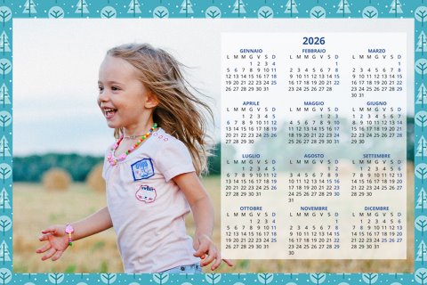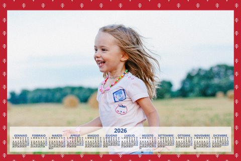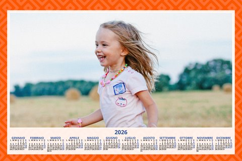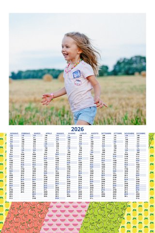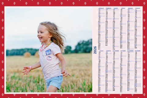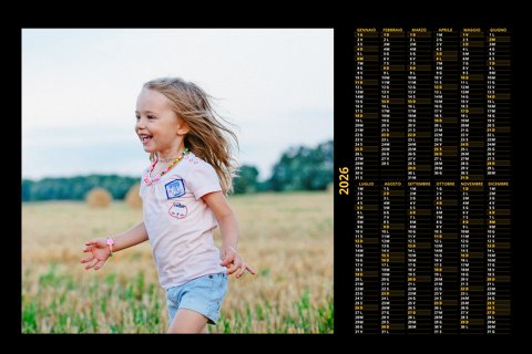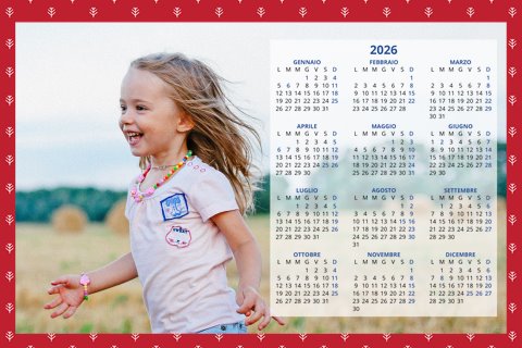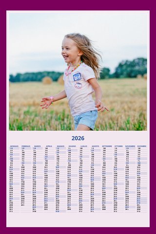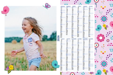 I Calendari Annuali sono offerti in differenti dimensioni e stampati su vari tipi di supporto. E’ necessaria una fotografia, da inserire in una delle raffinate grafiche offerte. Il posizionamento dell’immagine è determinante per la qualità del risultato finale: potrai modificare l’anteprima del tuo calendario, ed avere quindi il risultato più soddisfacente. E’ possibile effettuare questa operazione direttamente online.