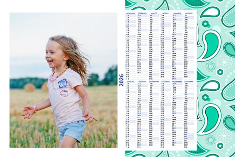 Scegli lo stile che più ti piace tra tantissimi modelli, il calendario è pronto per l’affissione (astine e gancio inclusi nel prezzo).