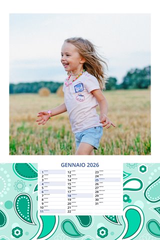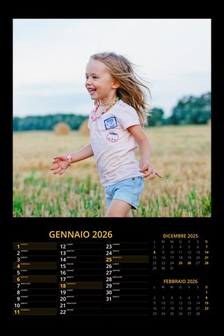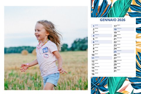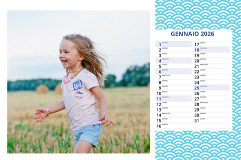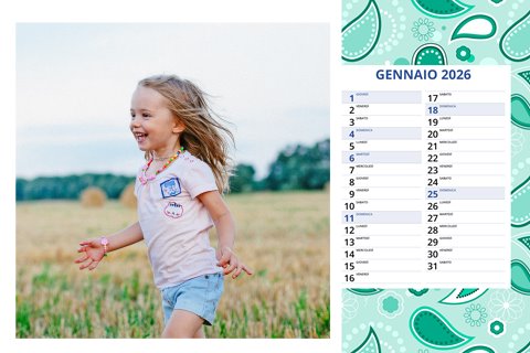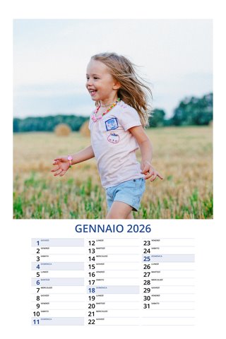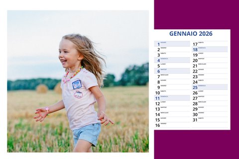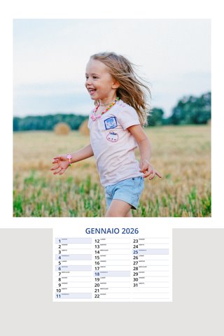 Scegli lo stile che più ti piace tra tantissimi modelli, il calendario è pronto per l’affissione (rilegato con spirale e astina di supporto).