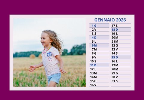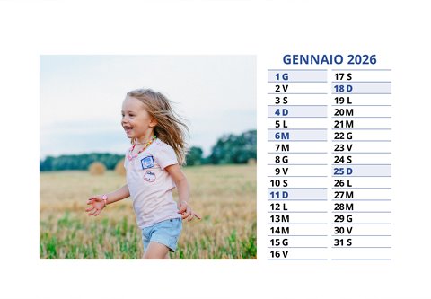 I Calendari da Tavolo sono realizzati con grafiche mensili, e sono disponibili modelli verticali e orizzontali; è possibile l’inserimento di 12 oppure 25 fotografie, e sono realizzati con tecnologia laser in quadricromia su carta di elevata qualità, patinata da 200 g/mq. Il supporto è realizzato in cartoncino rigido, e il montaggio è con spirale.