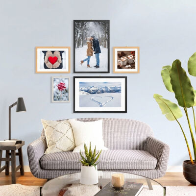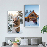 Pour les photos encadrées, l'image est imprimée sur une toile puis montée à la main sur un cadre en bois.